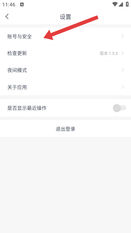 2、在设置页面,点击账号与安全选项,进入账号与安全的界面。