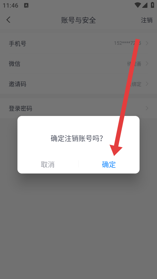 4、在确认框中,我们点击确定的按钮,完成账号注销的操作。