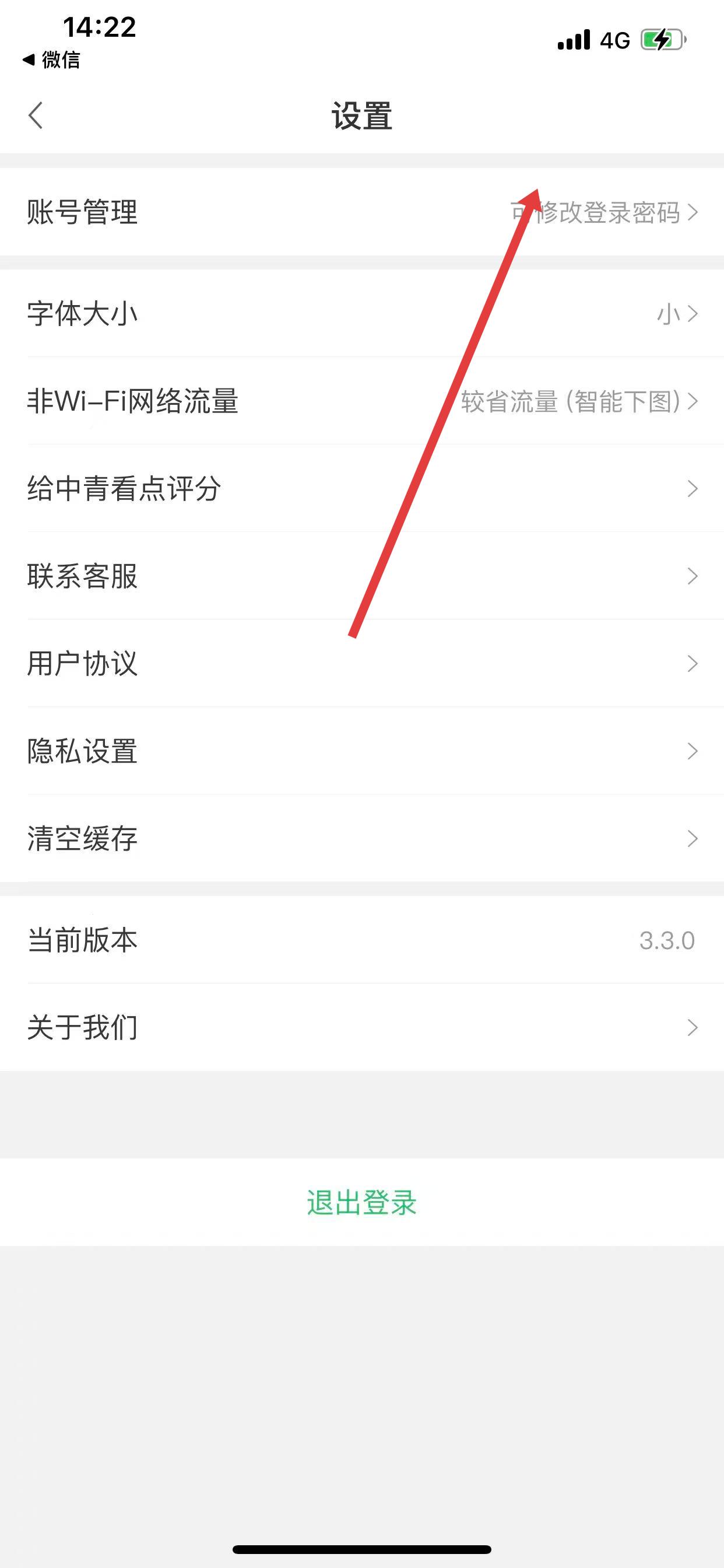 1、打开中青看点App,点击底部导航栏我的,再点右上角设置图标。