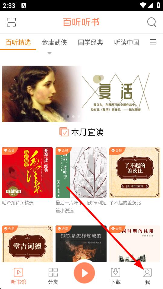 1、打开百听听书app,点击底部导航栏中的我选项。