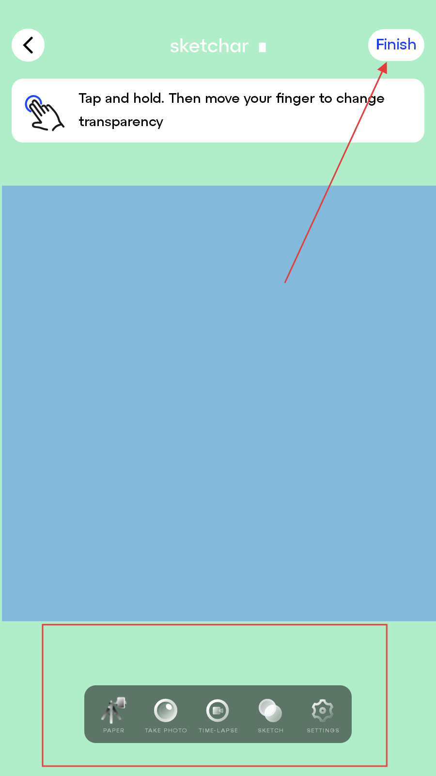 4、在AR绘画模式界面,利用底部工具栏的工具进行绘制,绘制完成后点击右上角Finish按钮。