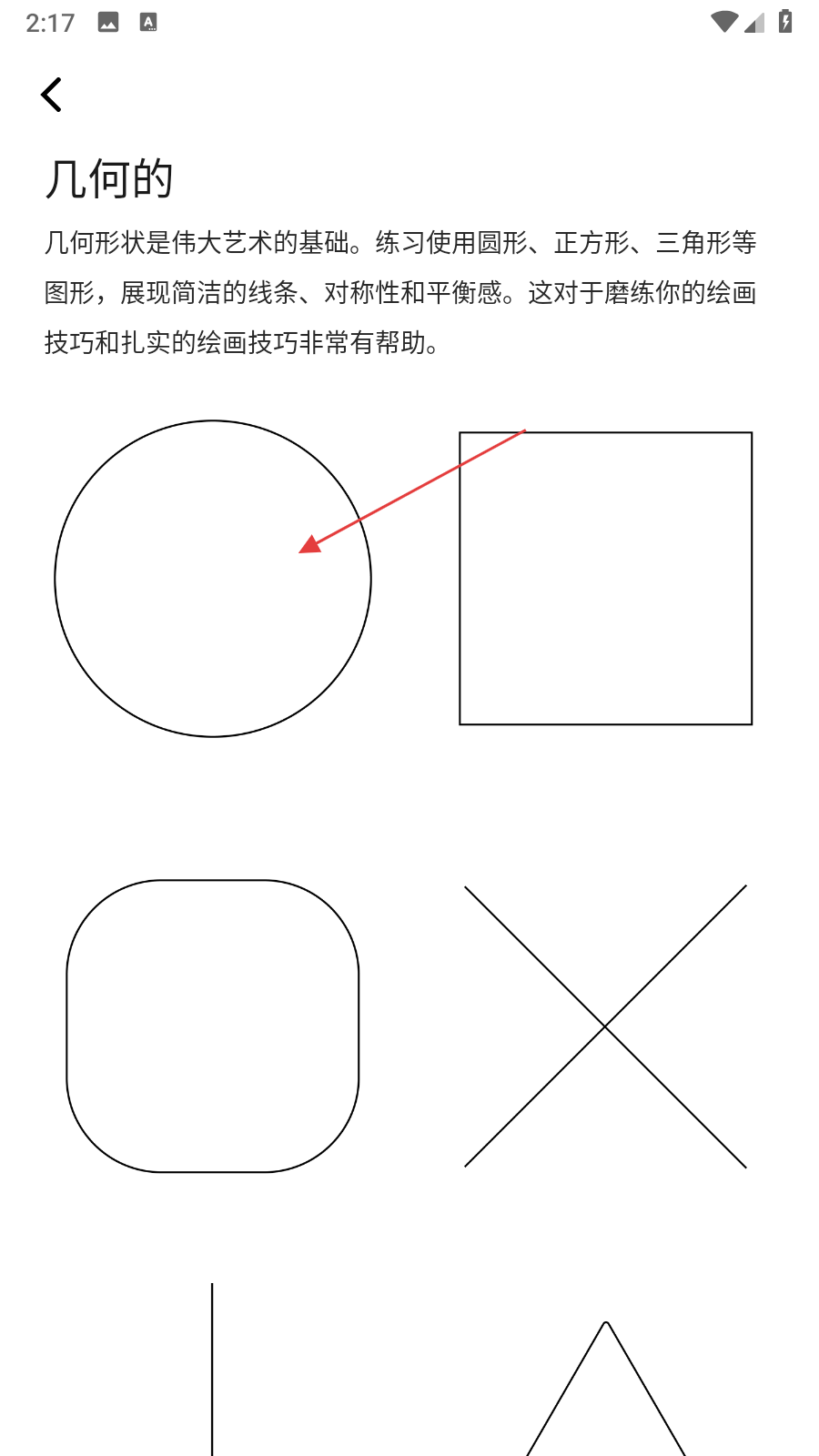 2、在几何图形展示页面,挑选想要练习绘制的几何图形,点击该图形后进入操作选择界面。