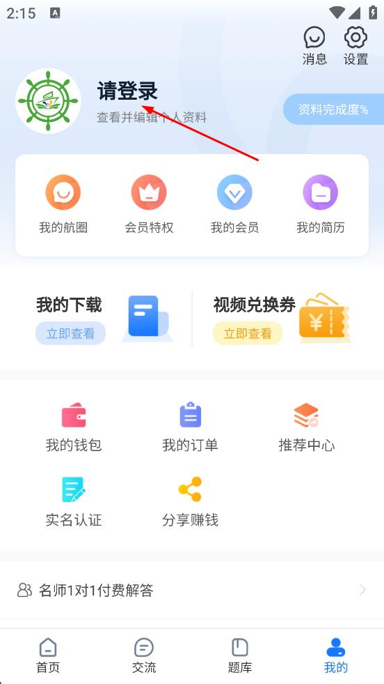 1、打开船员易综合服务平台软件,进入首页,点击页面下方的“我的”选项,进入个人中心页面。