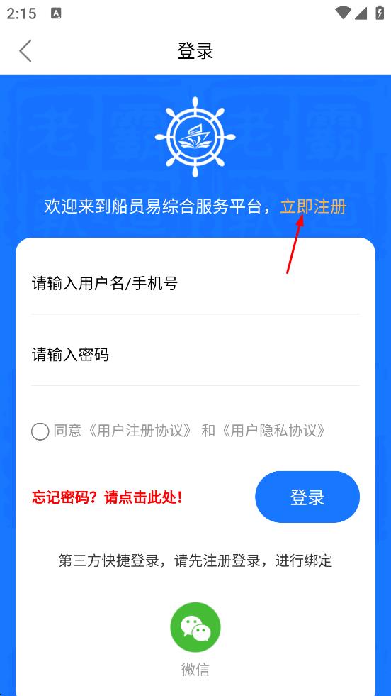 3、在登录页面,找到“立即注册”选项,点击该选项,进入注册页面,输入相关信息。