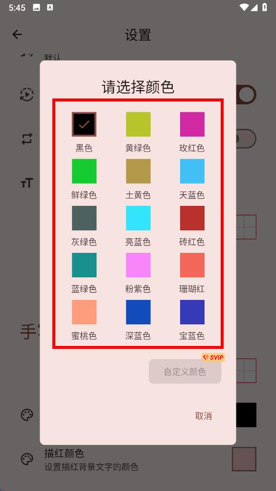 4、在弹出的颜色选择界面中,挑选你想要设置的笔画颜色,点击即可完成设置。