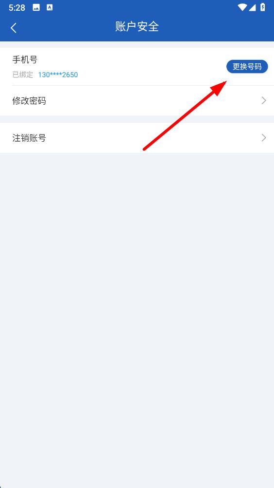 4、在账户安全设置界面,点击手机号右侧的更换号码。