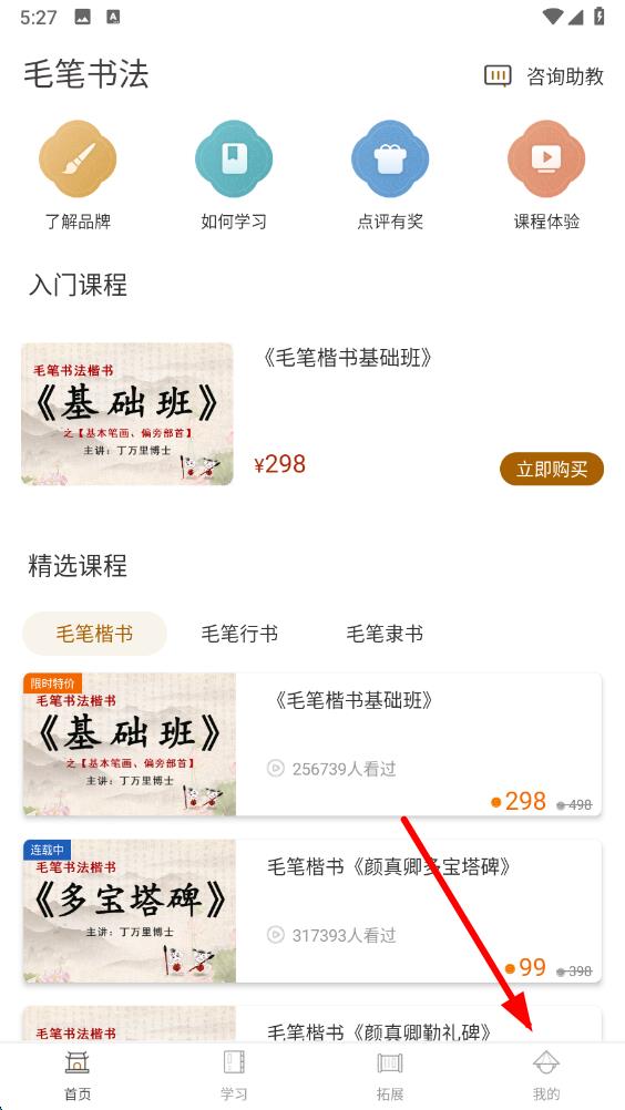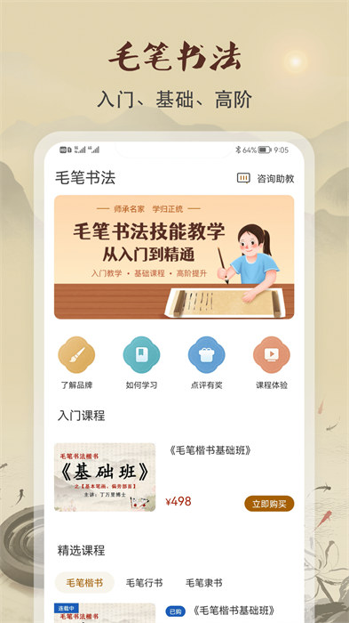 新增毛笔书法课程:毛笔楷书全阶段课程