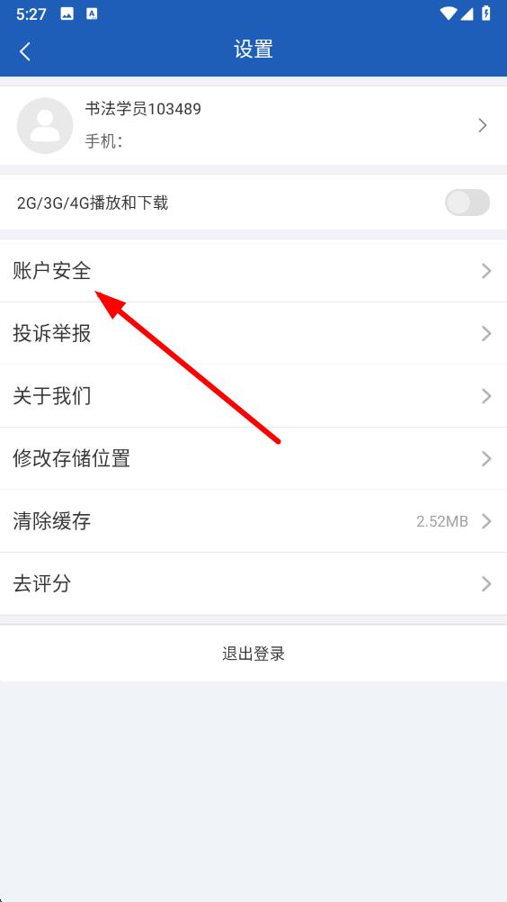 3、在设置页面里,点击账户安全选项,进入账户安全设置界面。