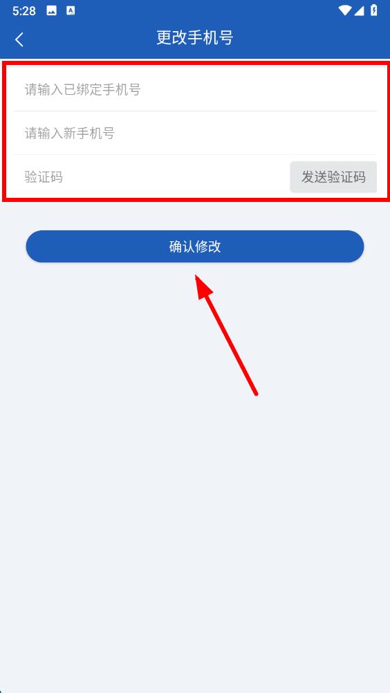 5、在页面依次输入已绑定手机号、新手机号,获取并输入验证码后,点击确认修改,即可完成手机号绑定修改。