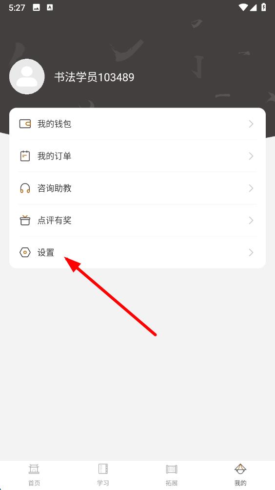 1、打开软笔毛笔书法app,点击底部导航栏最右侧我的,进入个人相关界面。