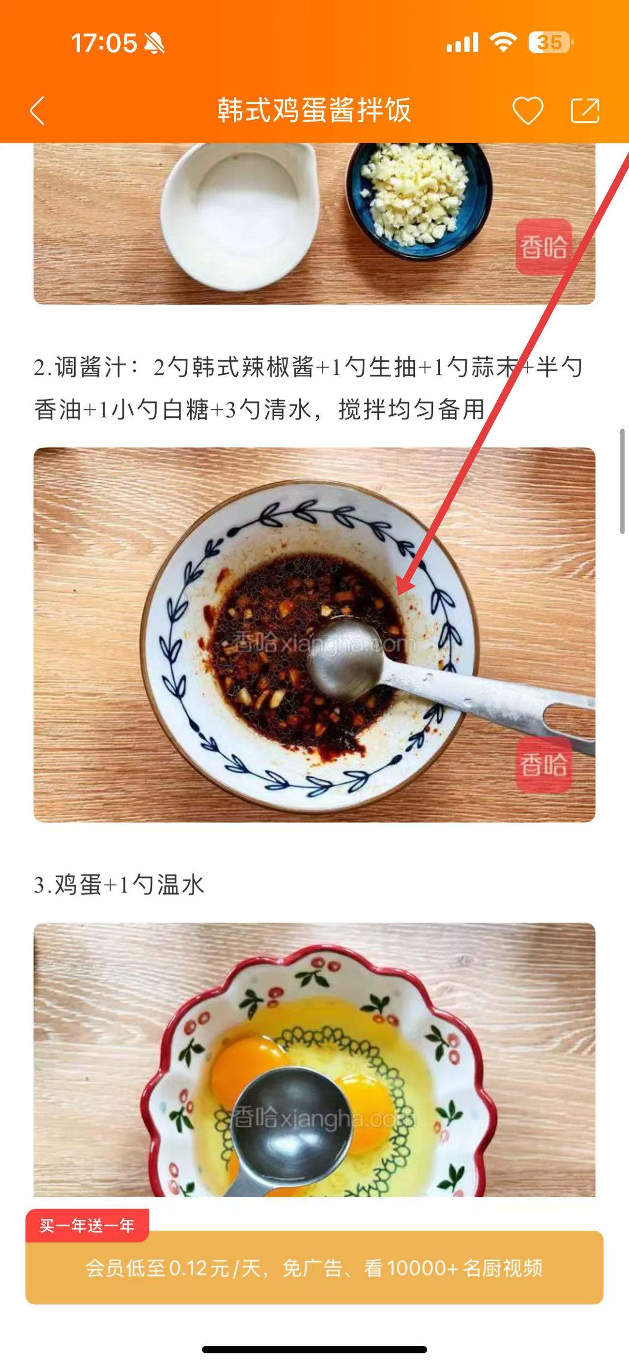 4、再往下,有制作步骤,比如调酱汁:2勺韩式辣椒酱+1勺生抽+1勺蒜末+半勺香油+1小勺白糖+3勺清水,搅拌均匀备用。
