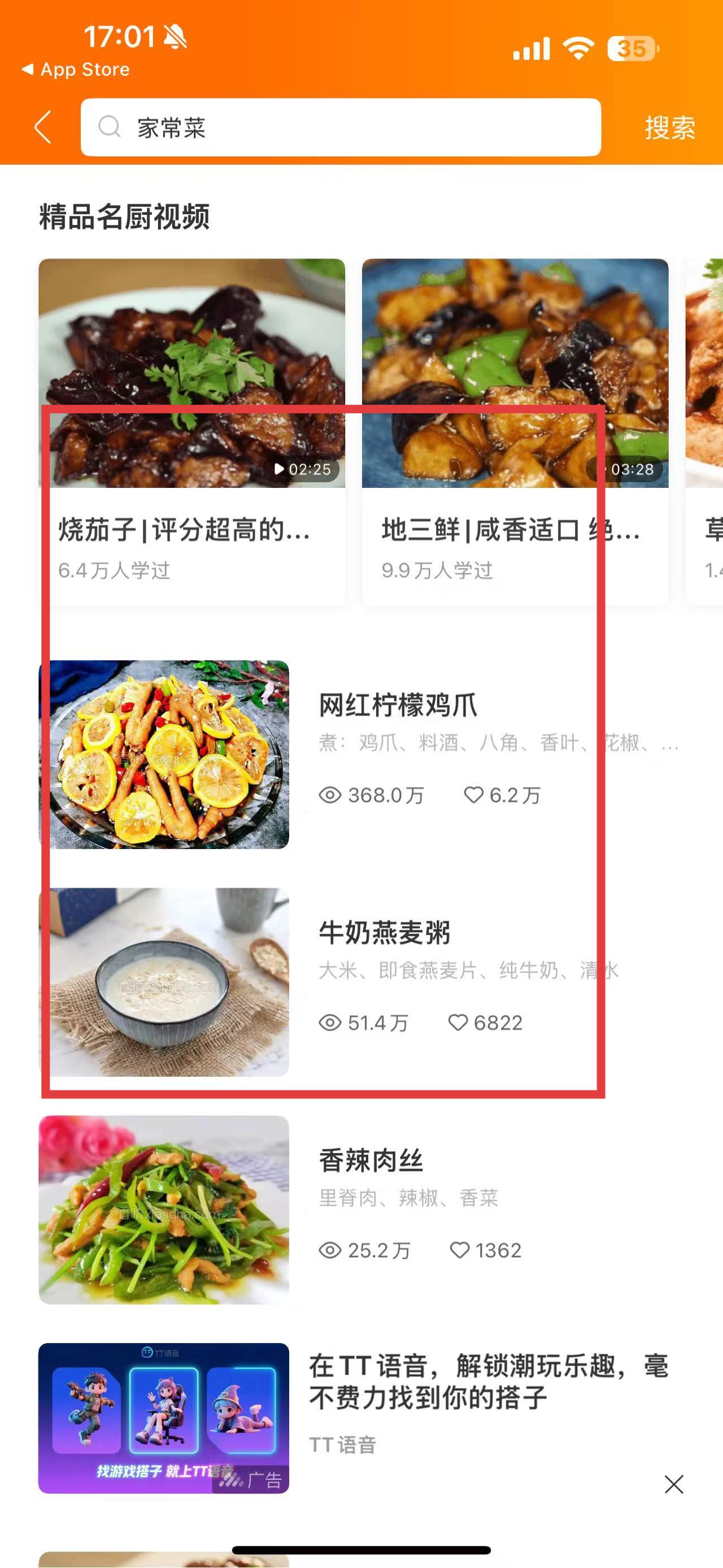 2、在家常菜列表里,选择想制作的菜品,比如网红柠檬鸡爪。