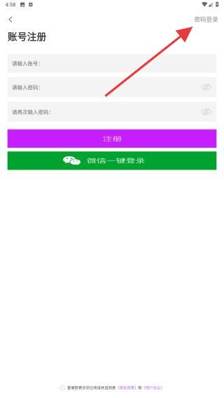 3、进入到登录的界面内,点击右上角密码登录的按钮。