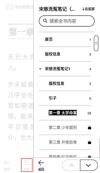 5、阅读界面选择目录,可以查看书籍的章节目录,并快速到达章节标题处
