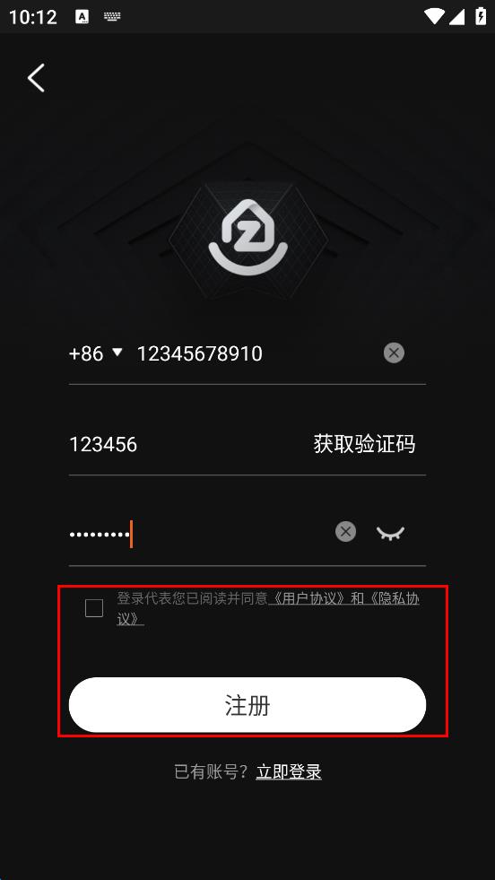 4、填写好所有注册信息后,勾选“登录代表您已阅读并同意用户协议和隐私协议,最后点击“注册”按钮,完成注册流程,之后可进行登录操作。