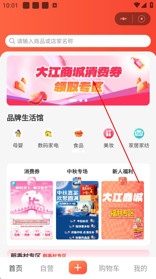 3、进入大江商城页面,点击大江商城消费券领取专区宣传图。