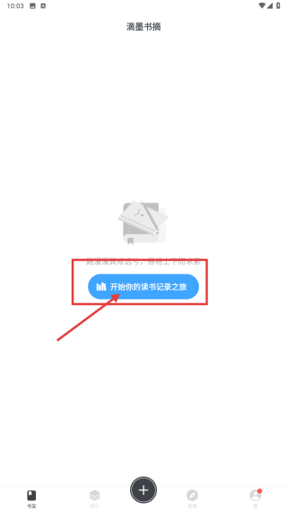 1、打开漫墨书摘应用,点击开始你的读书笔记之旅按钮,进入书籍操作页面。