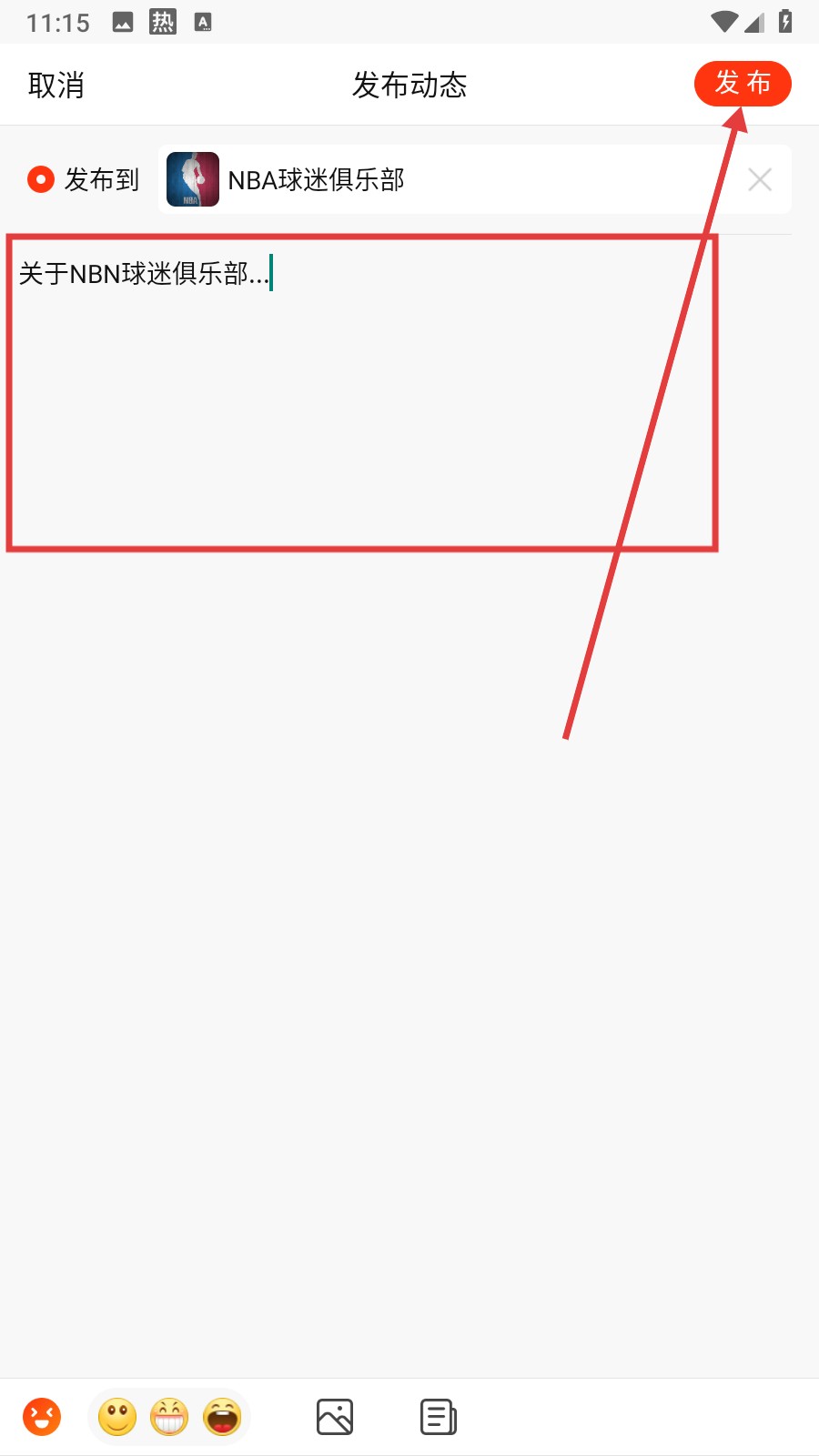 2、在发布框输入内容,点击右上角【发布】按钮。