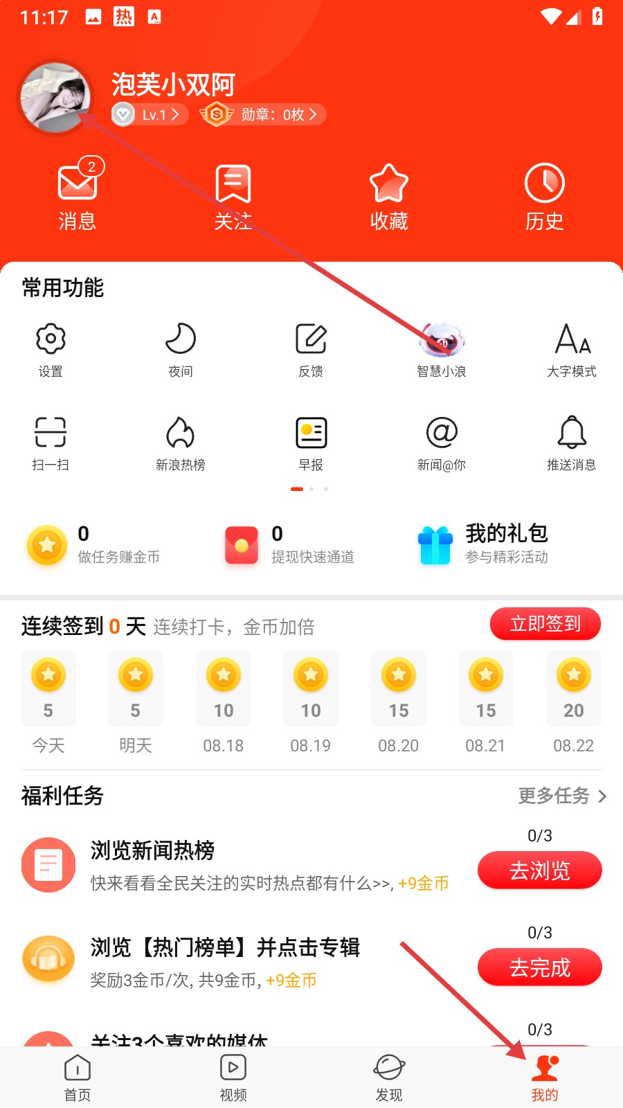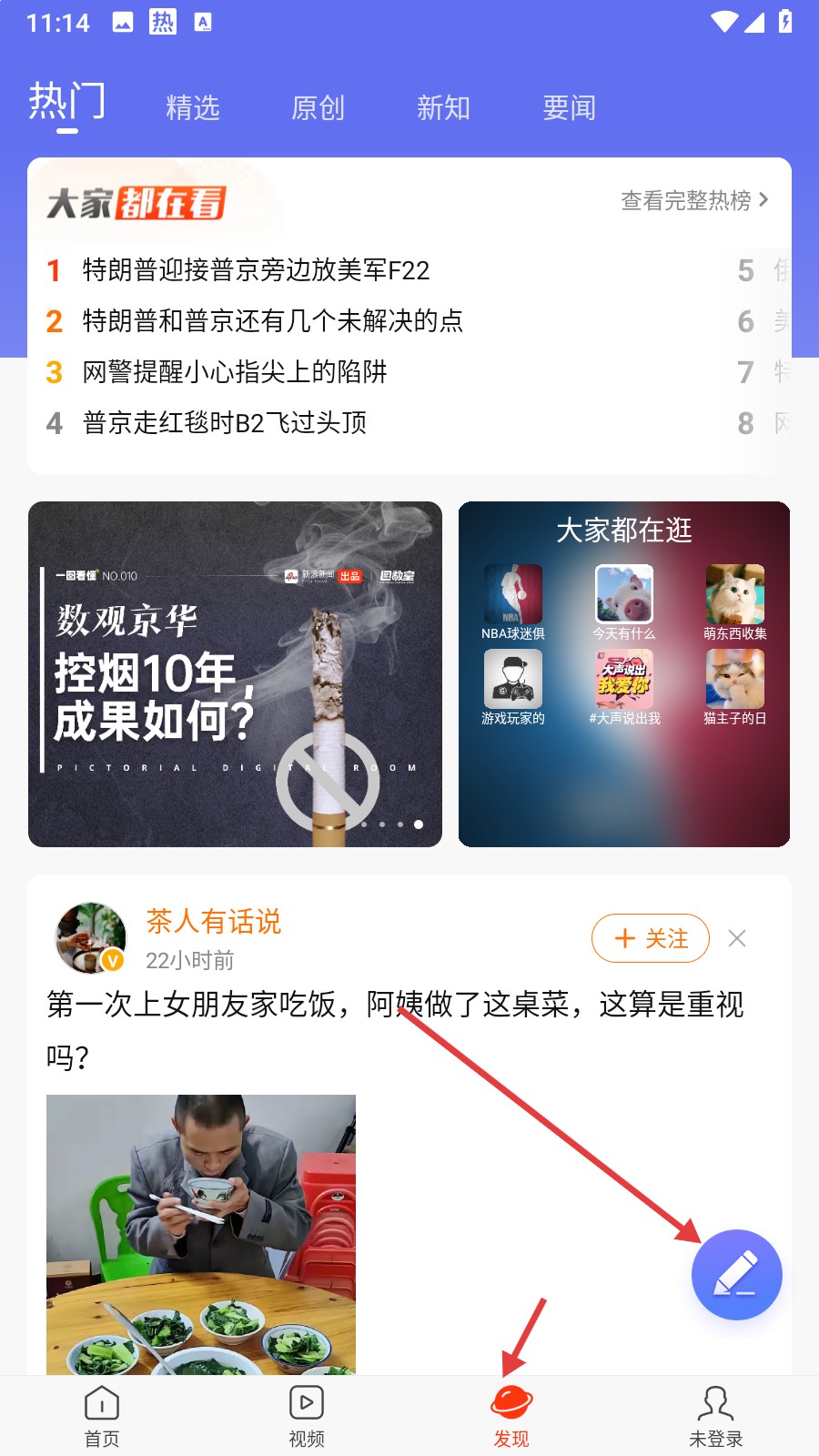 1、进入【新浪新闻】 App ,在【发现】页,点击右下角编辑按钮。