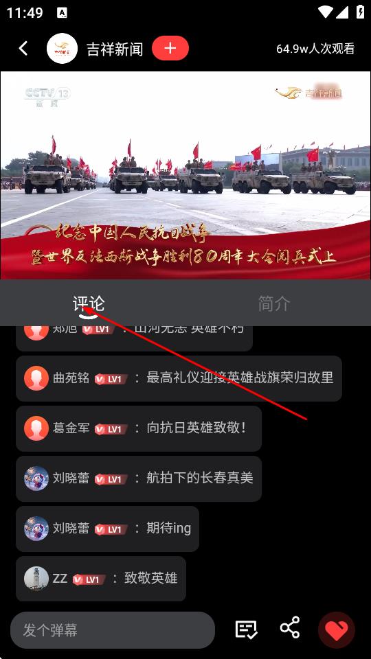 4、观看过程中,点击屏幕下方的评论标签,可查看其他用户的评论。