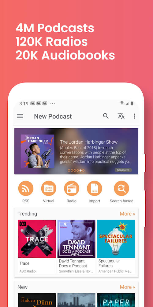 Podcast Addict按播客名称或关键字进行搜索(200万个播客/ 5000万个情节)