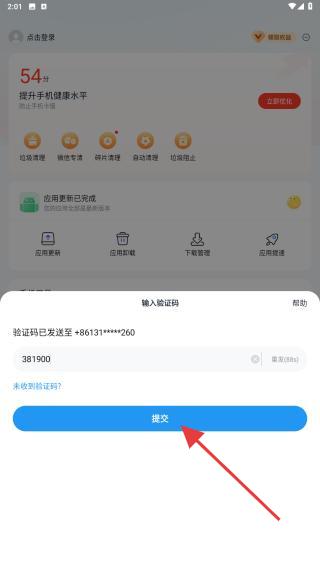4、将收到的验证码输入其中,再点击提交的按钮。