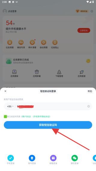 3、在短信验证码登录的验证码,输入后再点击获取验证码。