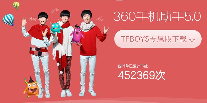 360手机助手tfboys版是360手机助手官方打造的tfboys粉丝福利版,现在TFBOYS成为其品牌代言人,这款tfboys版360助手也受到用户热烈欢迎,里面汇聚了海量的TFBOYS专属主题皮肤,内存更小了,速度更快了,功能更强大,赶紧下载吧。