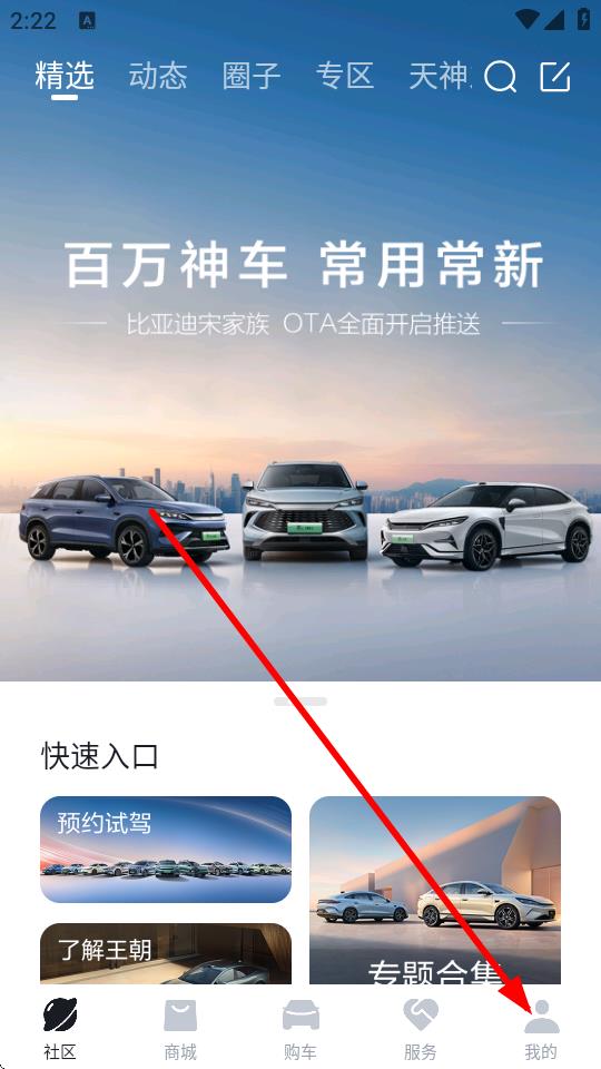 1、打开比亚迪云服务app,进入首页后点击底部我的选项。