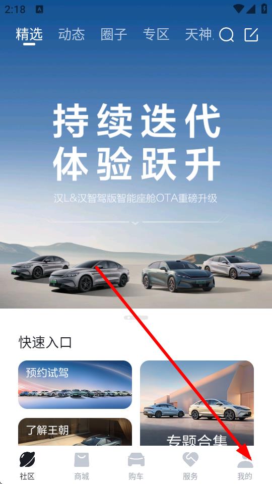 1、打开比亚迪云服务app,进入首页后点击底部我的选项。