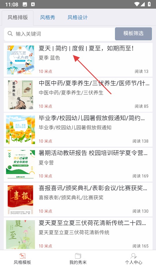 3、查看选中模板“夏天|简约|度假|夏至,如期而至!”的内容。