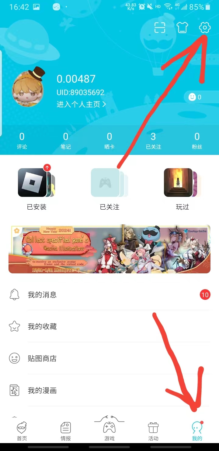 1.qooapp的更新非常方便,我们进入软件点击右下角我的,在左上角找到已安装