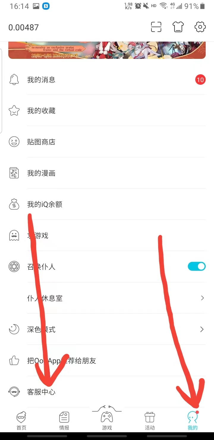 2.进入qooapp软件点击右下角我的,并点击客服中心