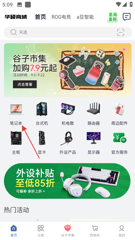 1、进入华硕商城首页,点击笔记本分类,查看笔记本相关商品。