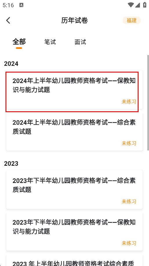 3、在历年试卷页面,选择要做的试卷,进入试卷题目页面。
