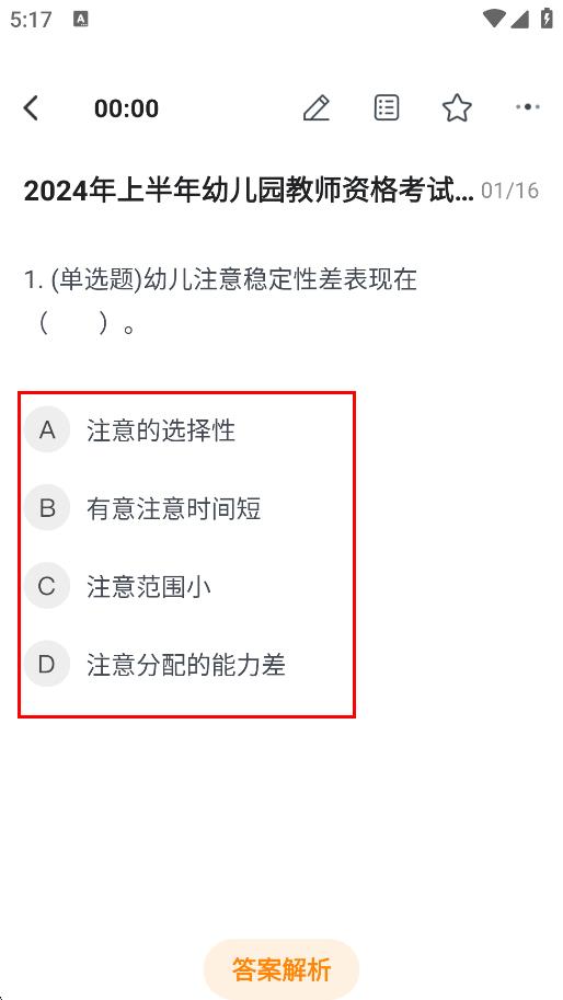 2、题目练习作答:在题目板块中选择所需练习类型,进入答题界面后逐题作答,完成后查看解析,梳理错题思路,强化对知识点的记忆。