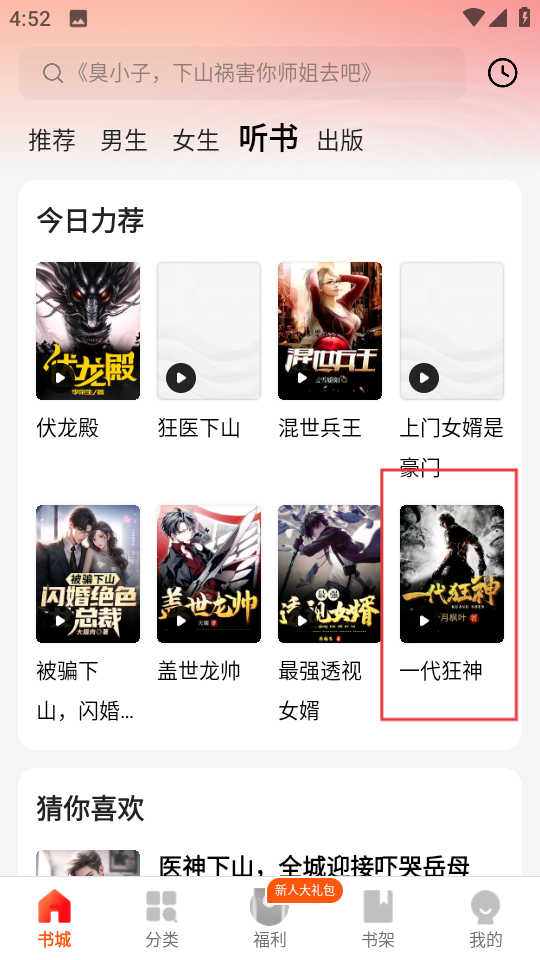 2、在听书板块,找到心仪的听书内容,比如一代狂神,点击进入其详情页。