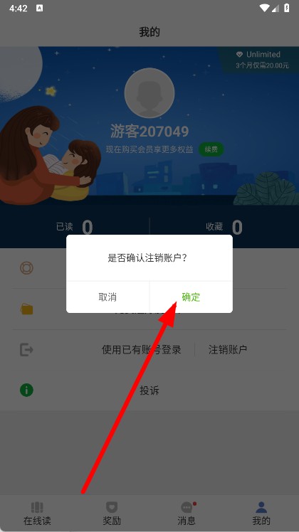 4、在确认框中,点击确定按钮,即可提交账户注销申请。