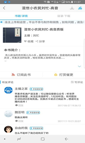 4、 "正在播放":显示您正在播放的作品,可以在评论标签发表您的收听感受!