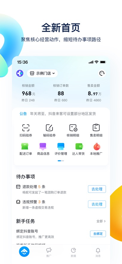 实时数据看板:直观展示核销金额、订单数、售卖金额等关键经营指标