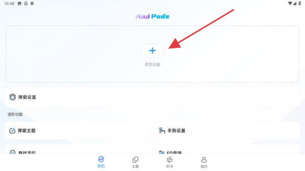 1、打开AndPods软件,在首页内点击添加设备的功能按钮。