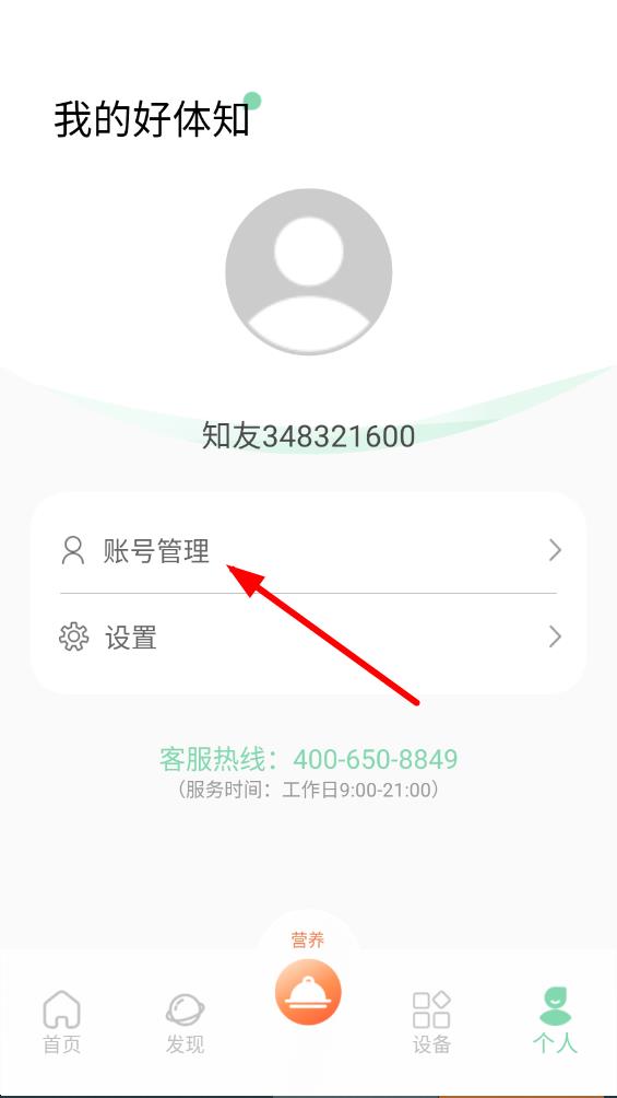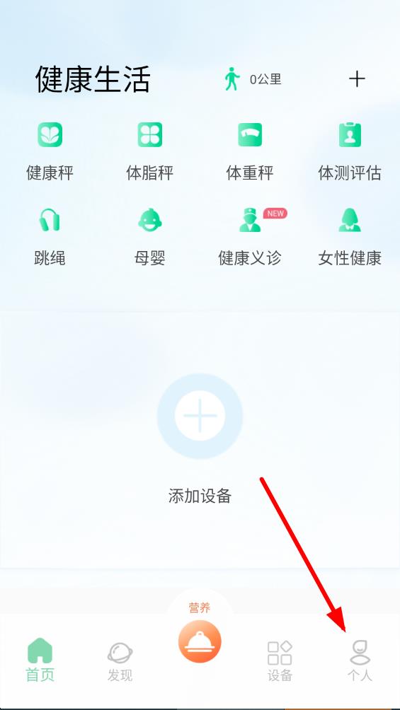 1、打开好体知体脂秤app,点击底部导航栏最右侧的个人图标,进入个人相关设置界面。
