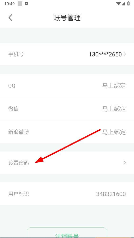 3、在账号管理页面里,点击设置密码选项,进入设置登录密码界面。