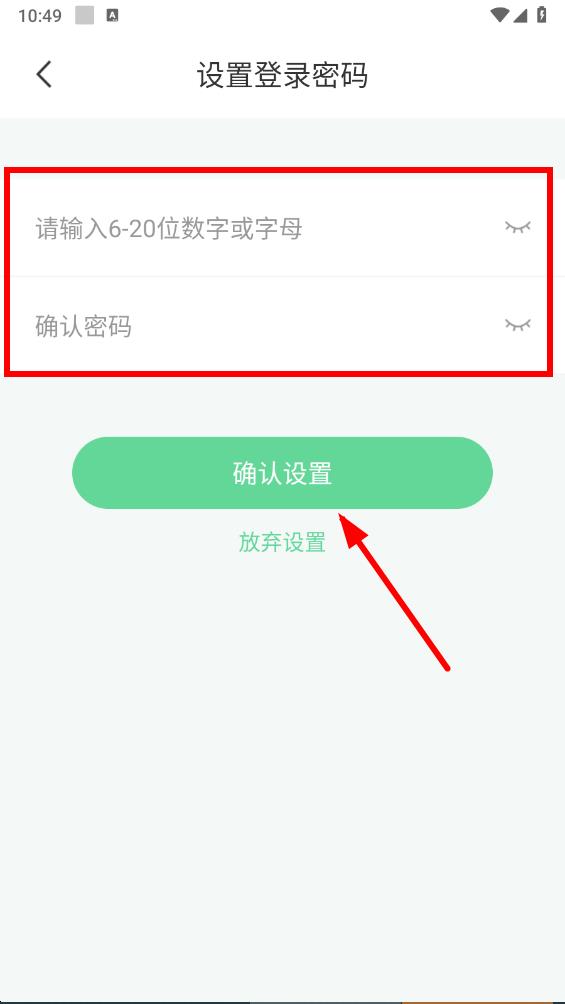 4、在设置登录密码界面,输入密码,再次输入进行确认,然后点击确认设置按钮,即可成功设置密码。