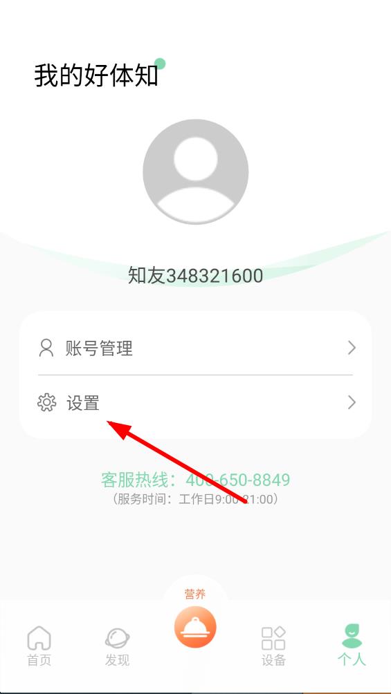 1、打开好体知体脂秤app,在首页点击底部导航栏最右侧个人图标,进入个人相关界面。