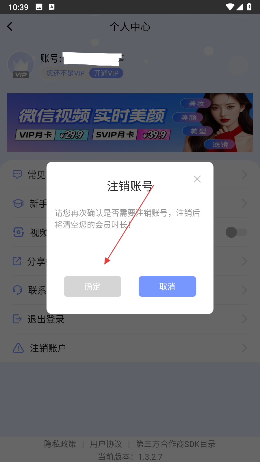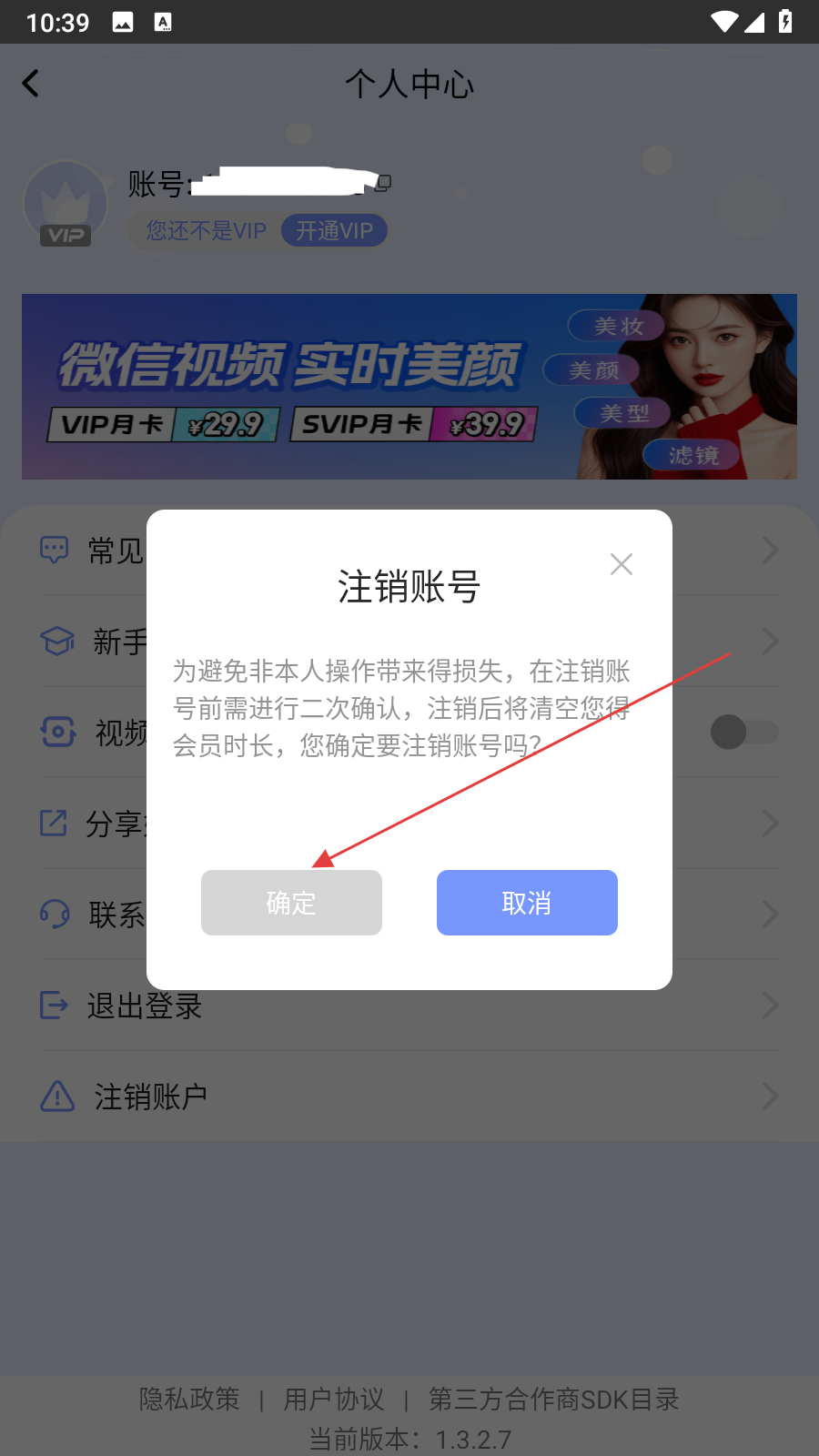 4、二次确认弹窗出现后,再次点击确定,即可完成账号注销。