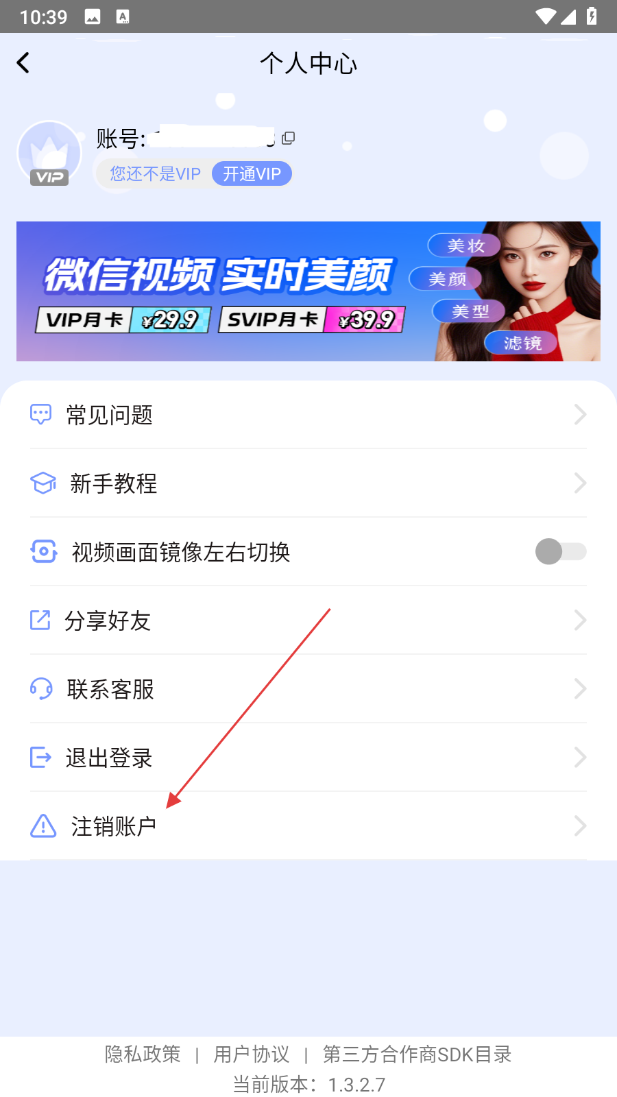 2、在个人中心页面,找到注销账户选项并点击,弹出注销账号确认窗口。