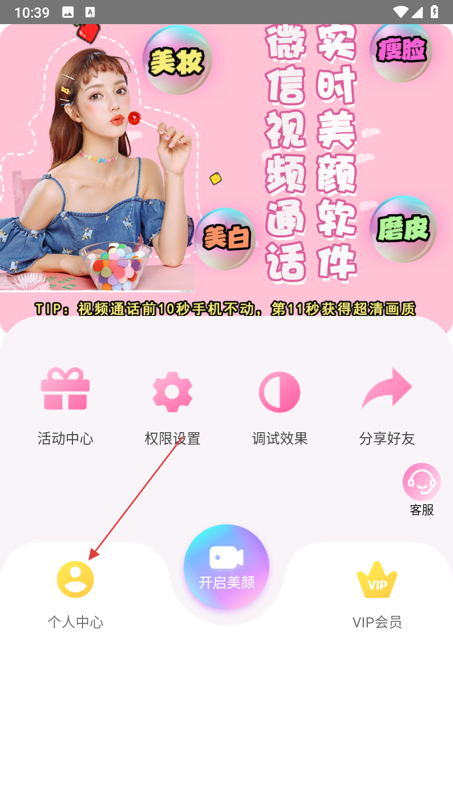 1、打开微颜视频美颜APP,点击个人中心,进入个人中心页面。