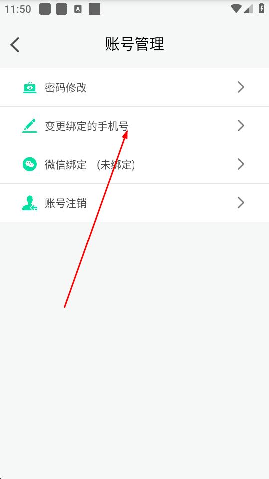3、进入账号管理页面后,点击变更绑定的手机号选项。