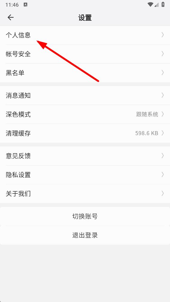 3、在设置界面里,点击个人信息,进入个人信息编辑页面。